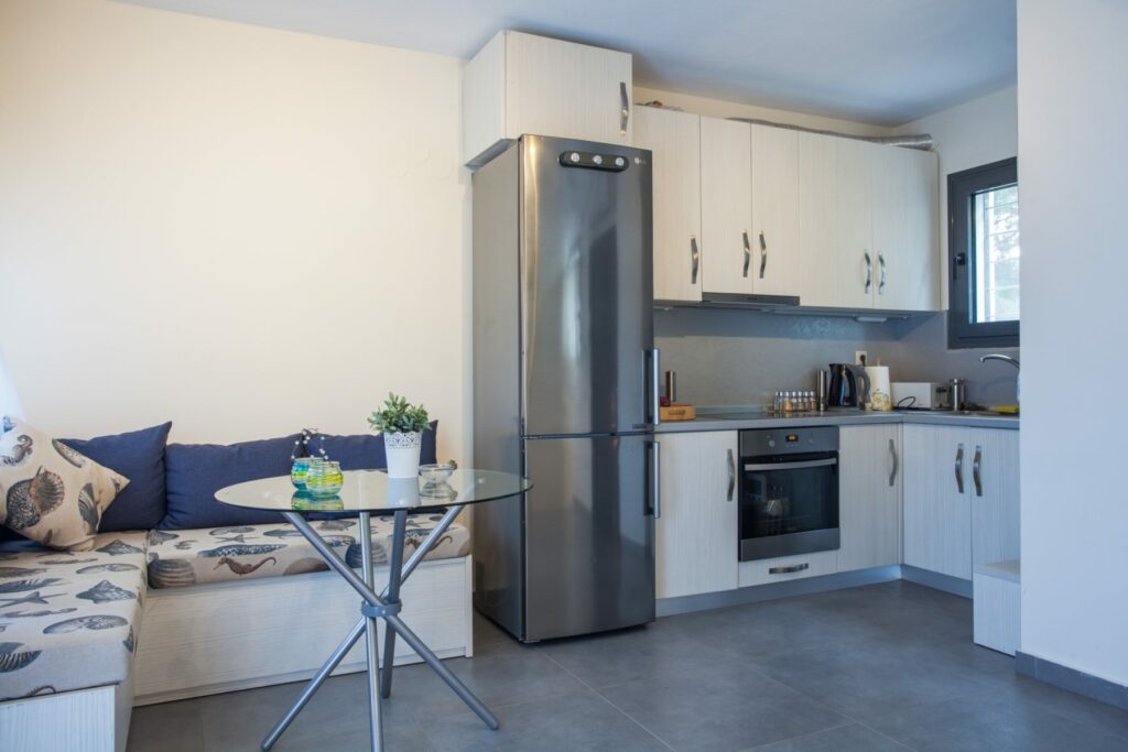 Η παραλία είναι πολύ κοντά, σε απόσταση περίπου 50-70μ από τα σπίτια. Επιπλέον, για την άνεσή σας, παρέχονται δύο ξαπλώστρες και μία ομπρέλα για κάθε σπίτι.