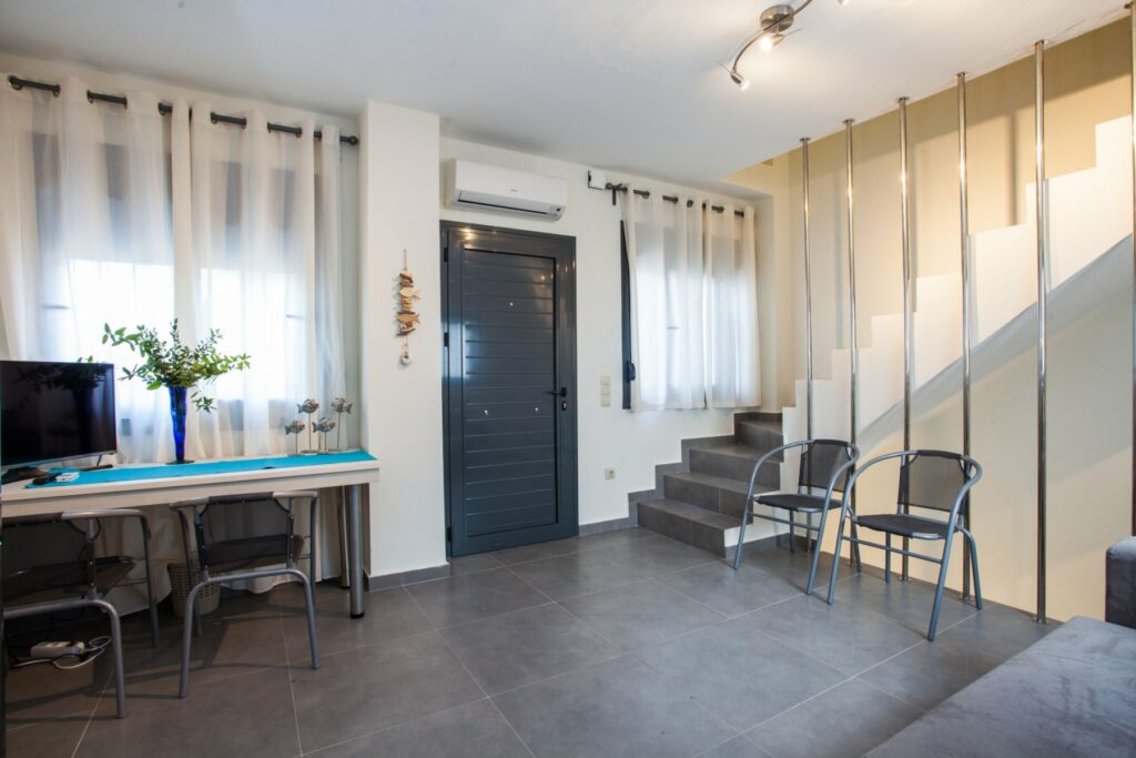 Στο ισόγειο οι επισκέπτες μπορούν να επωφεληθούν από το άνετο καθιστικό με κλιματισμό και την άμεση πρόσβαση στη βεράντα καθώς και την πλήρως εξοπλισμένη κουζίνα με καφετιέρα φίλτρου.